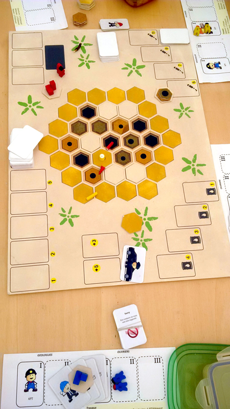 J’ai commencé à me lancer dans la création il y a une petite année. Après deux essais infructueux, la mécanique du jeu ne prenait pas, j’ai développé Petroleum. La phase de test a mis à contribution tous mes amies lors de matinées brunch-jeu.