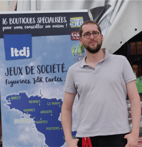 Antonin est gérant de la boutique Temple du jeu et est un incontournable du festival.