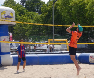 Le soleil brille intensément, réchauffant le sable doré sous les pieds des joueurs. Le bruit des festivaliers se mêle aux cris d’encouragements des spectateurs alignés le long du terrain. Deux équipes de quatre joueurs chacune sont prêtes à s’affronter dans une partie endiablée de beach-volley.