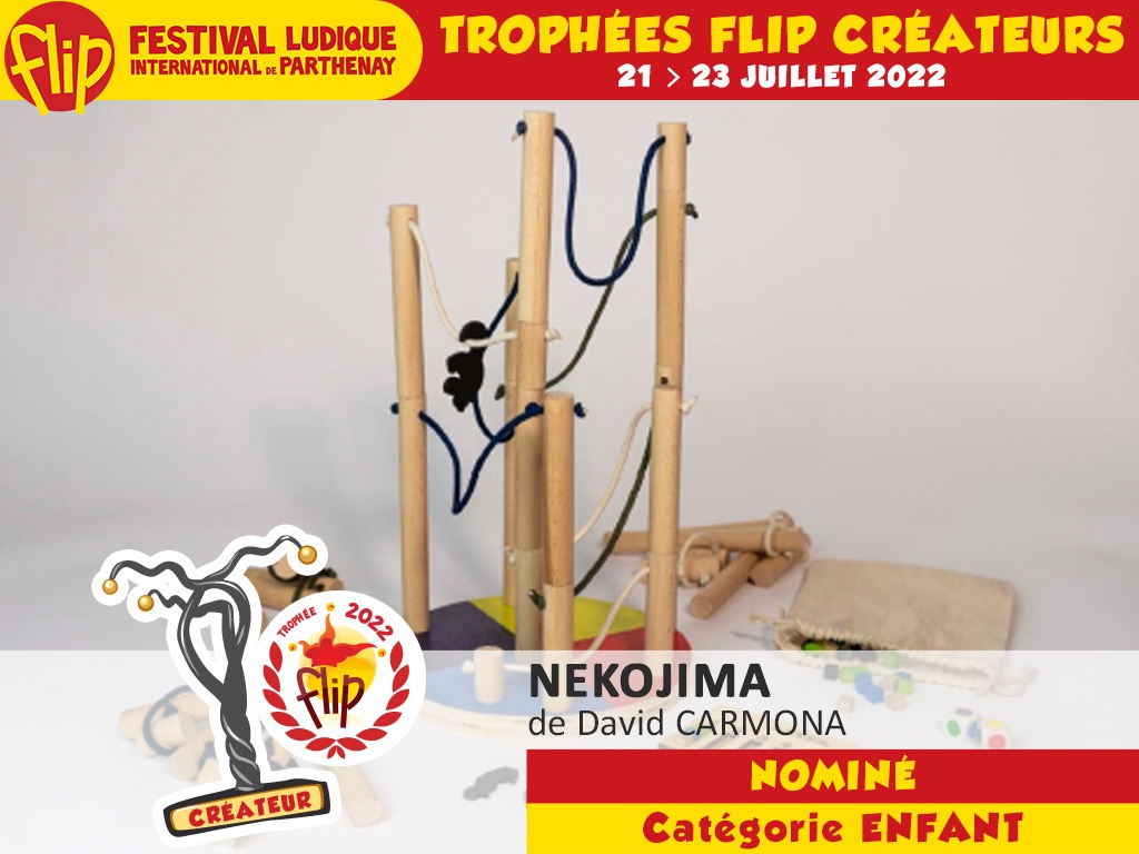 Nekojima est un jeu d’adresse en bois dans lequel il faudra maintenir en équilibre toute une installation. Les joueurs doivent tour à tour placer ou empiler des Denchuu 電柱 (Poteaux électriques) en bois en respectant les emplacements sans qu’aucun câble suspendu ne se touche. Mais attention à ne pas être celui qui fait tomber la structure. Ce jeu demande réflexion, concentration et adresse.